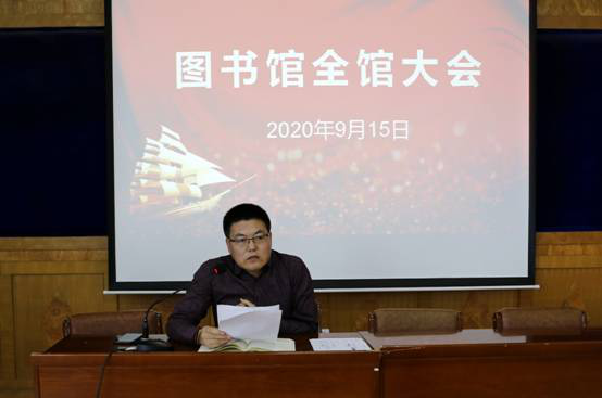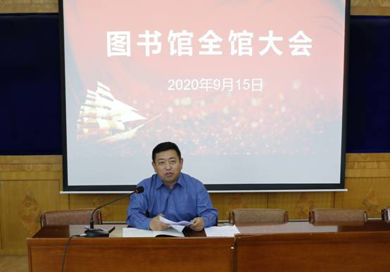 9月15日下午,在图书馆五楼报告厅,召开了2020年下半年图书馆全馆大会,会议由唐武生馆长主持,图书馆全体教职工参会。
