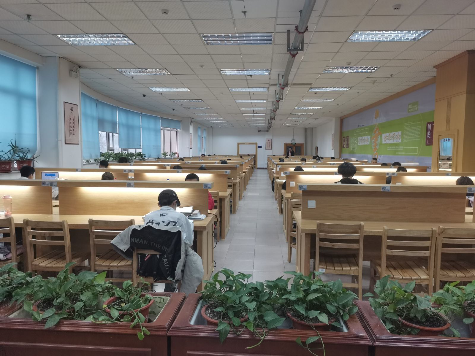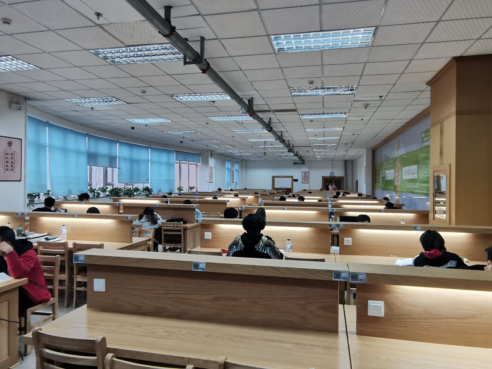 第一数字阅读空间面向全校读者开放,设置360个座位,座位旁暖心配置了台灯、电源插口,采用预约座位管理方式。预约方式和其它普通阅览室一样,扫码选座即可。