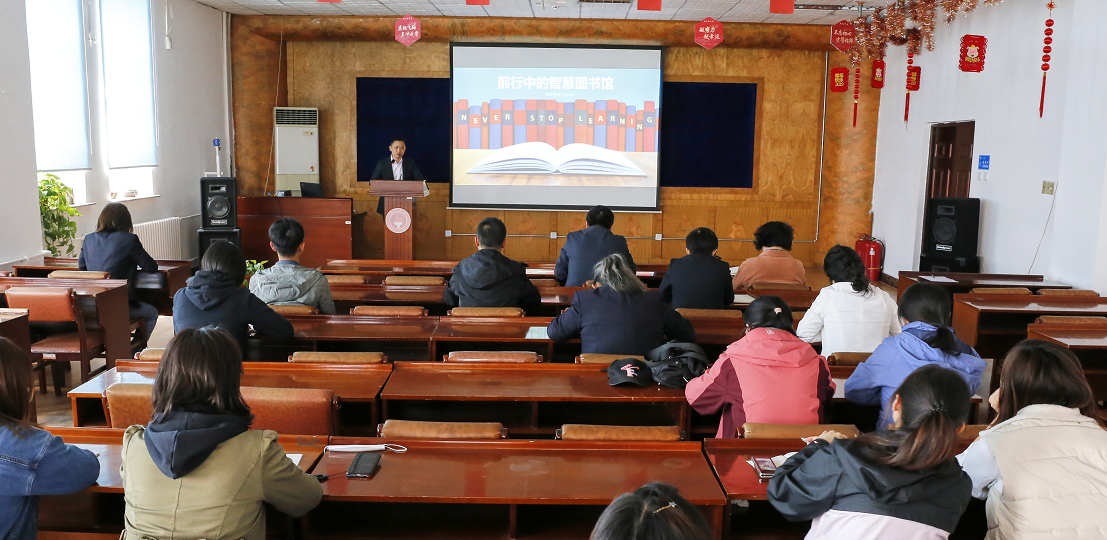 2021年4月28日下午,在图书馆五楼报告厅举办“前行中的智慧图书馆”专题业务培训,主讲人为重庆维普资讯有限公司的冯应兵工程师,图书馆馆领导及部分馆员参加了本次业务培训。