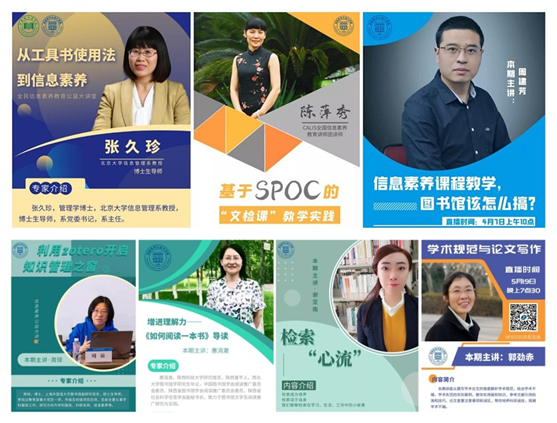 本次公益大讲堂邀请图书馆界专家学者,自3月23日至5月19日,针对“从工具书使用法到信息素养”、“基于SPOC的文检课教学实践”、“信息素养课程教学,图书馆该怎么搞?”、“利用Zotero开启知识管理之窗”、“增进理解力:《如何阅读一本书》”、“检索心流”、“学术规范与论文写作”这七个信息素养教育领域热点问题进行线上授课。