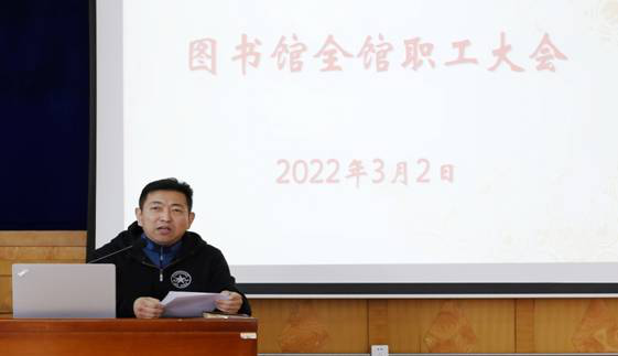 3月2日上午,图书馆在五楼报告厅召开了全馆职工大会。会议由党总支书记金云主持。