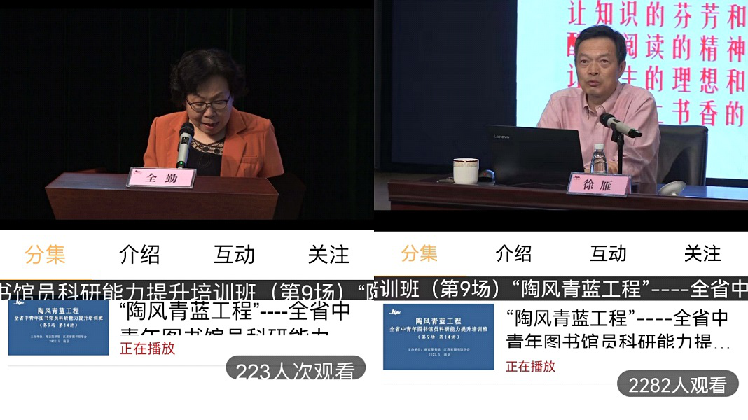 近日,由南京图书馆和江苏省图书馆学会联合主办的“陶风青蓝工程——全省中青年图书馆员科研能力提升培训班”计划,通过线上和线下相结合的方式,举办系列培训讲座。5月23日,长春大学图书馆组织全体部门主任及青年馆员,收看了第一场直播讲座。本次讲座由南京大学教授、博士生导师徐雁教授,汇报学术报告《全民阅读与素养提升----“三位一体”理念与“六分法”推广实践》。